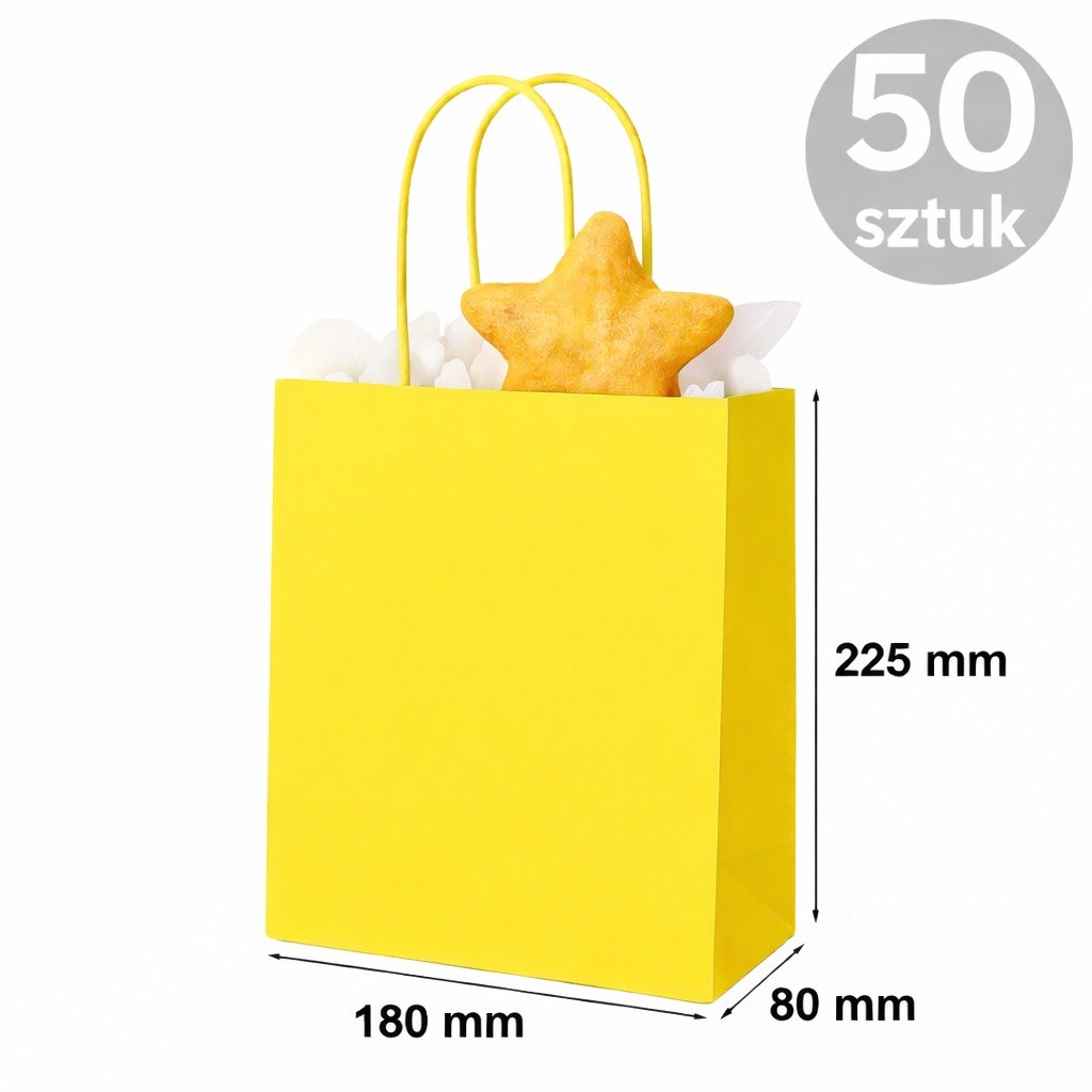 Torba Papierowa Żółta 180×80×225 mm (50 sztuk)