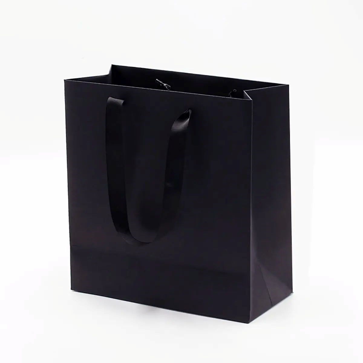 Czarna torba papierowa wykonana z papieru art w formacie 245×110×260 mm wyróżnia się elegancką, jednolitą kolorystyką oraz gładką powierzchnią. Stanowi estetyczne tło dla nadruków oraz tłoczenia folią, umożliwiając wyraźną i czytelną personalizację. Wymienne uchwyty pozwalają dopasować torbę do charakteru marki lub okazji. Całość prezentuje się nowocześnie i profesjonalnie.