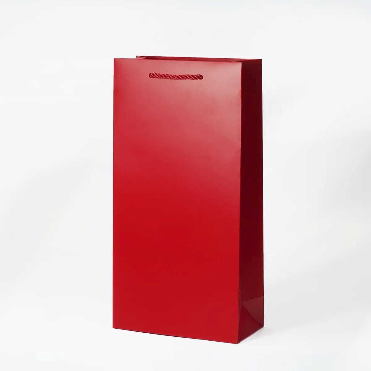 Torba papierowa czerwona na dwie butelki wina laminowana 200×100×350 mm