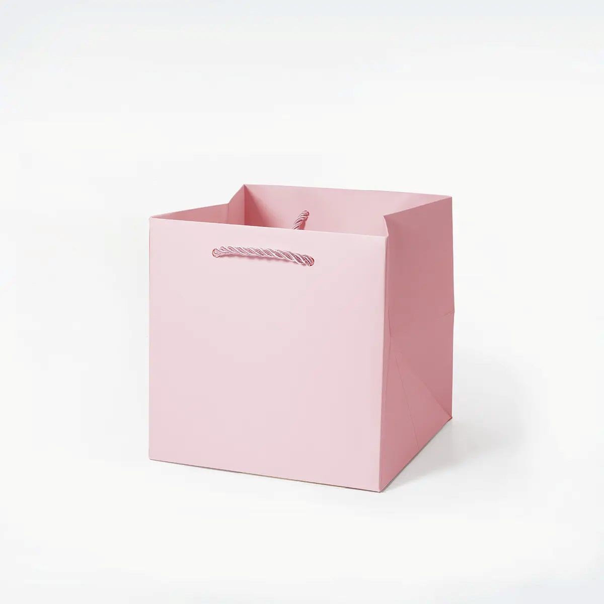 Torba papierowa różowa kwadratowa laminowana 165×165×165 mm