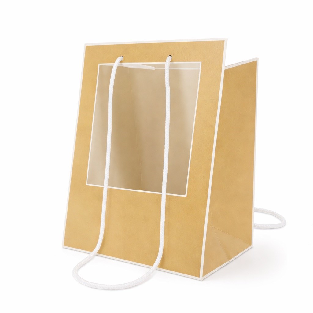 Torba Prezentowa z Oknem 300 × 300 × 400 mm Naturalna Brązowa (1 sztuka) – torba na bukiety i prezenty z oknem