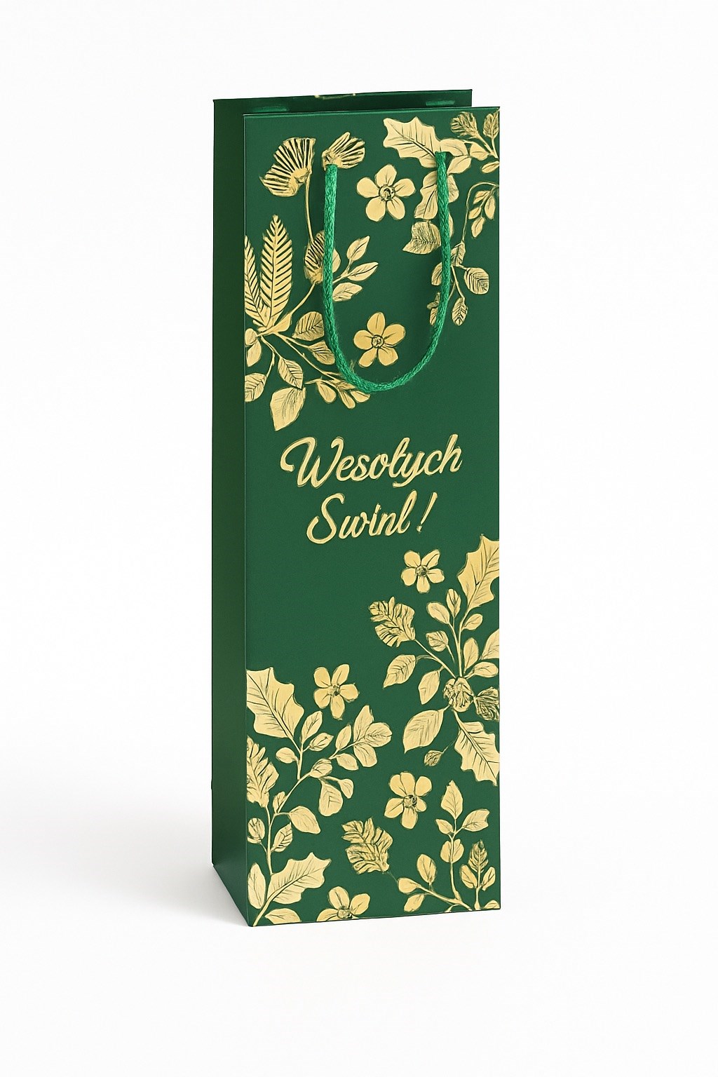 Elegancka torebka świąteczna na wino w formacie 125 × 85 × 360 mm to stylowe opakowanie, które podkreśla wyjątkowy charakter świątecznego upominku. Motyw dekoracyjny dodaje jej uroku, a staranne wykonanie sprawia, że prezent wygląda estetycznie już od pierwszego wrażenia. Świetnie sprawdzi się jako oprawa dla win, nalewek i alkoholi premium.